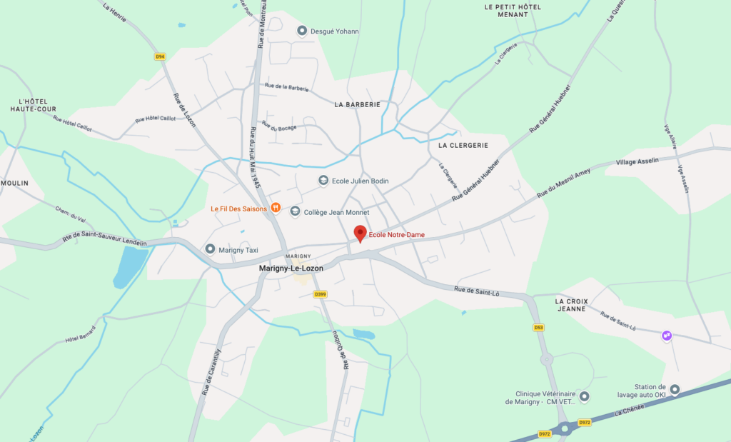 L’école Notre Dame est située au coeur de la commune de Marigny-Le-Lozon. Idéalement située sur l’axe St-Lô – Coutances.